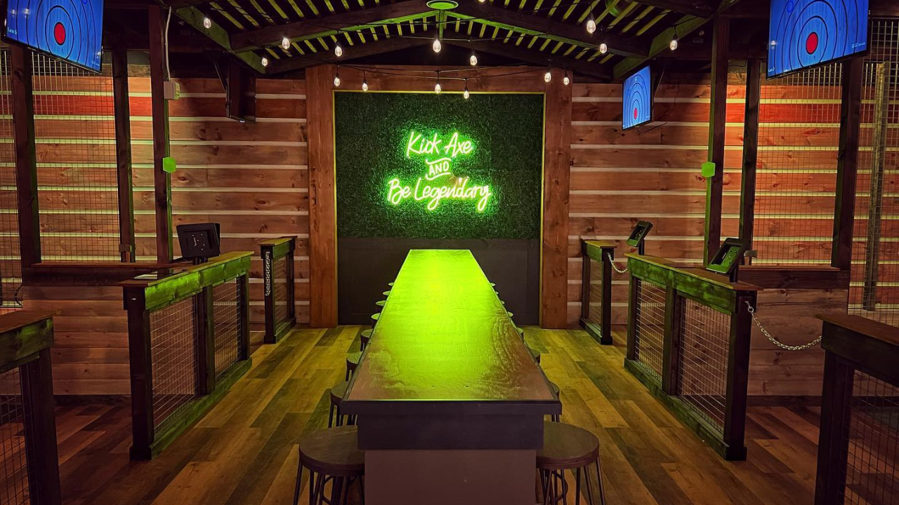 Enjoy a lumberjack-themed outing filled with food, drinks, and axe throwing! Play mini games and tournaments with your friends while throwing axes, or lie back and relax in our lounge while enjoying specialty cocktails, beer, and small bites. The Legendary Axe is the newest way to host a party, corporate event or just spend a night out with friends. Axe throwing is bowling on crack!
